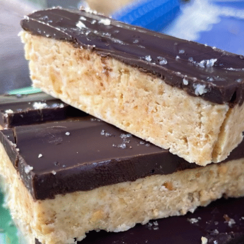 This recipe calls for a full pound of powdered sugar, so I made a few adjustments to help control the sweetness. I used a crunchy, natural peanut butter instead of a peanut butter with added sugar, and dark chocolate instead of the traditional semi-sweet chocolate. I also added a sprinkling of sea salt at the end which helped balance out the sweetness of the bar.