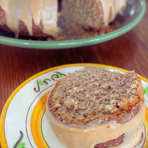 Pour the batter into a well-prepared bundt or tube pan and bake according to the recipe instructions. Allow the cake to cool completely before finishing with a spiced coffee glaze.