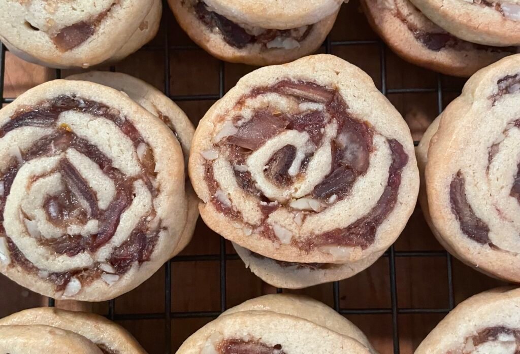 If you love dates and nuts, these pinwheel cookies are a must-bake!The cookies feature a swirl of jammy dates, crunchy walnuts, and a hint of citrus, and are just the right amount of sweet. They come from the same cookbook as the lemon pecan version, and their pinwheel patterns add an especially lovely touch to any holiday cookie platter.